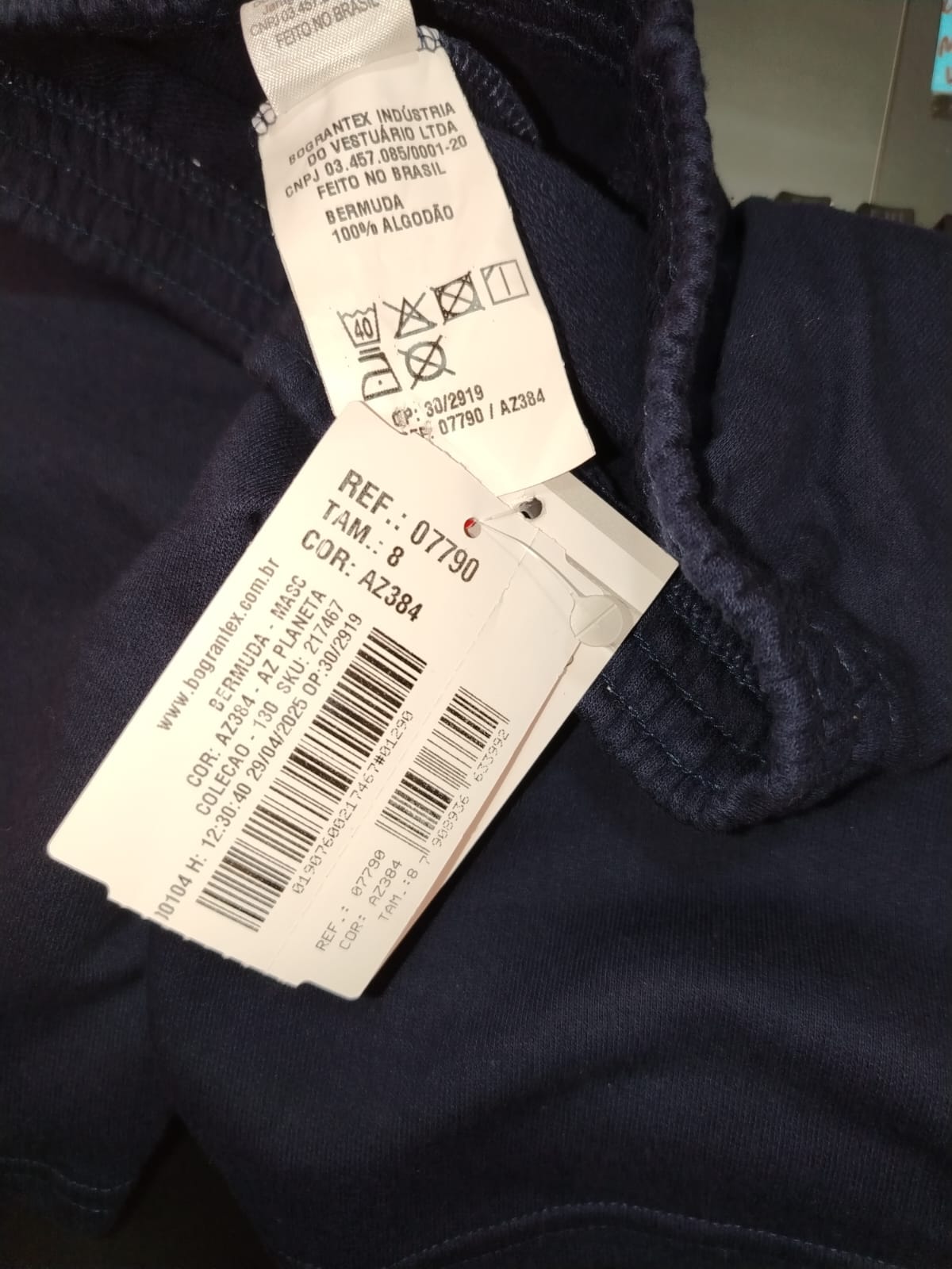 Bermuda infantil masculina confeccionada em tecido 100% algodão, proporcionando toque macio, respirabilidade e conforto ideal para o dia a dia. Modelo com cós totalmente elástico, garantindo ajuste confortável ao corpo da criança. Possui modelagem reta, comprimento acima do joelho e acabamento simples na barra. Cor azul marinho (AZ384), versátil e fácil de combinar com camisetas e regatas. Aplicação discreta de etiqueta decorativa na parte frontal inferior. Produto fabricado no Brasil pela Bograntex Indústria do Vestuário Ltda., com excelente padrão de qualidade e costura reforçada. Ideal para uso escolar, passeios e momentos de lazer.