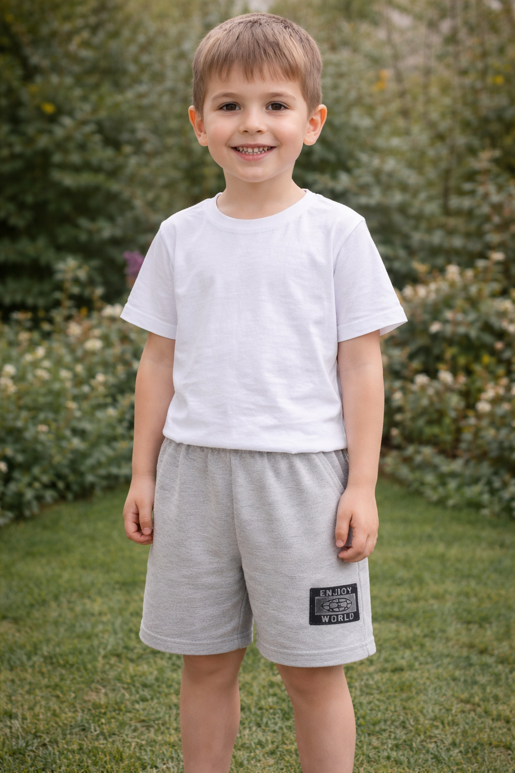 Bermuda infantil masculina confeccionada em moletinho leve, ideal para o dia a dia das crianças. A peça possui tecido macio e confortável, garantindo liberdade de movimento para brincar, passear ou usar em momentos de lazer.