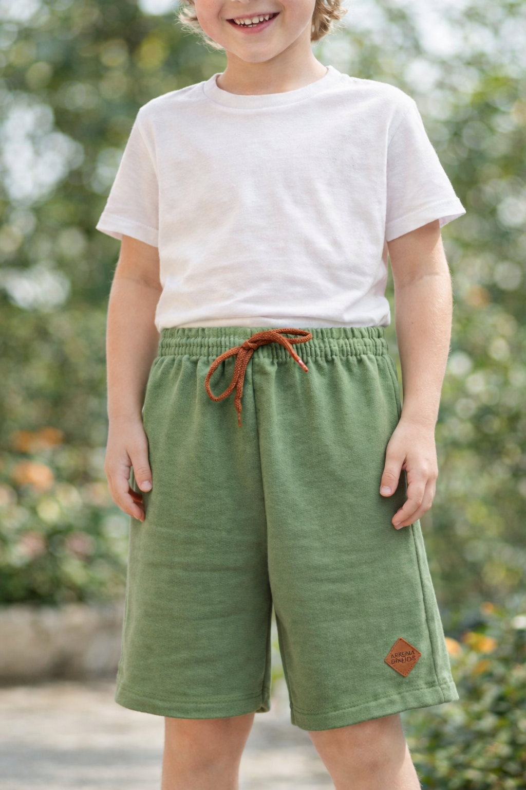 Bermuda infantil masculina confeccionada em moletinho 100% algodão, proporcionando conforto e liberdade de movimento para o dia a dia das crianças. Possui cós com elástico e cordão ajustável em tom contrastante, garantindo melhor ajuste ao corpo. O modelo apresenta acabamento simples e moderno, com aplicação de etiqueta em material sintético da marca Arrumadinhos na parte frontal, trazendo um detalhe discreto e estiloso. Ideal para momentos de lazer, passeios e atividades ao ar livre, combinando facilmente com camisetas e regatas.