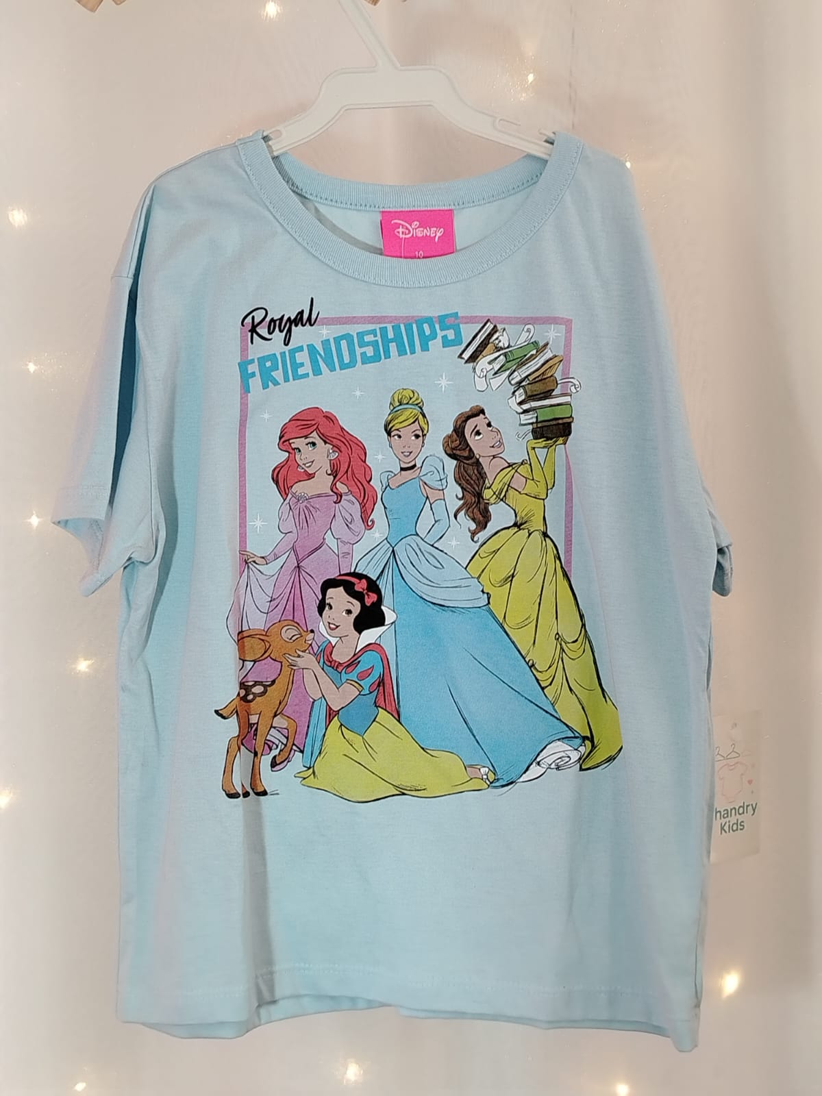 Camiseta infantil feminina da coleção Disney Princess – Royal Friendships, fabricada pela Kamylus Malhas.