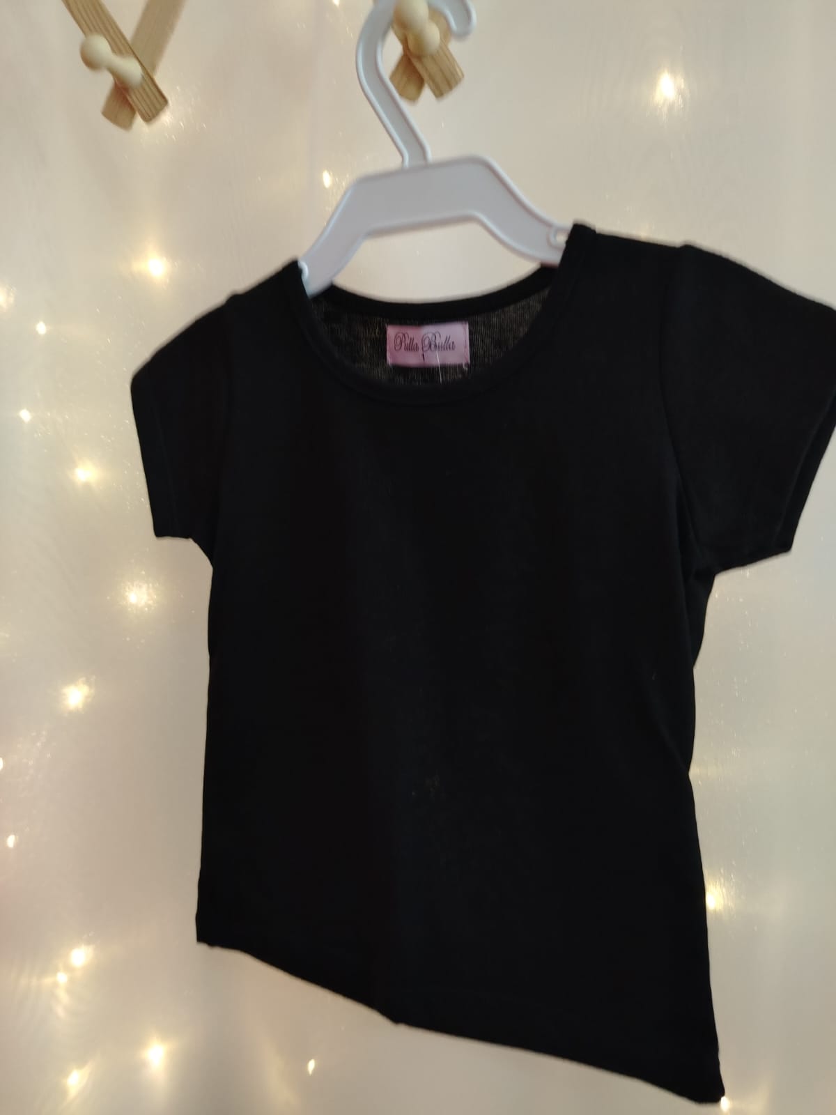 Blusa infantil feminina da marca Pulla Bulla, confeccionada em tecido macio e confortável, ideal para o dia a dia. Modelo de manga curta, com gola redonda e acabamento delicado, proporcionando liberdade de movimentos e ótimo caimento. Cor preta, versátil e fácil de combinar com diferentes peças, perfeita para compor looks casuais ou mais arrumadinhos. Indicada para crianças tamanho 01, aproximadamente 1 ano.