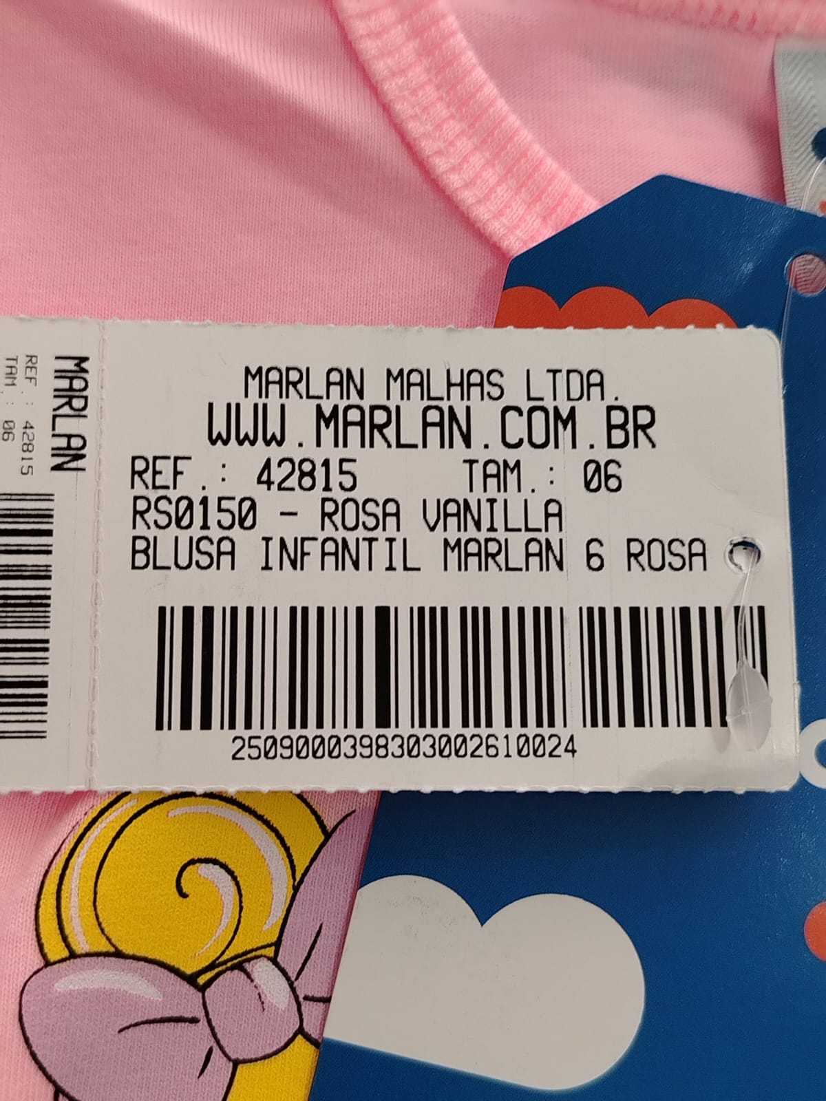 Blusa infantil feminina Marlan, confeccionada em tecido leve com toque macio.