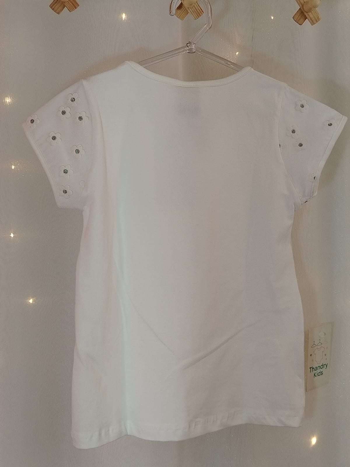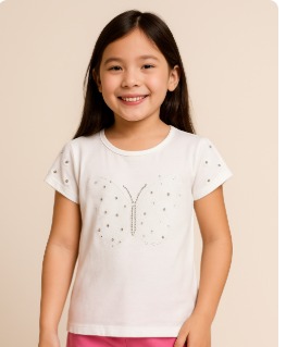Blusa Menina Branca Borboleta com Aplique em Brilhos Tamanho 10 anos