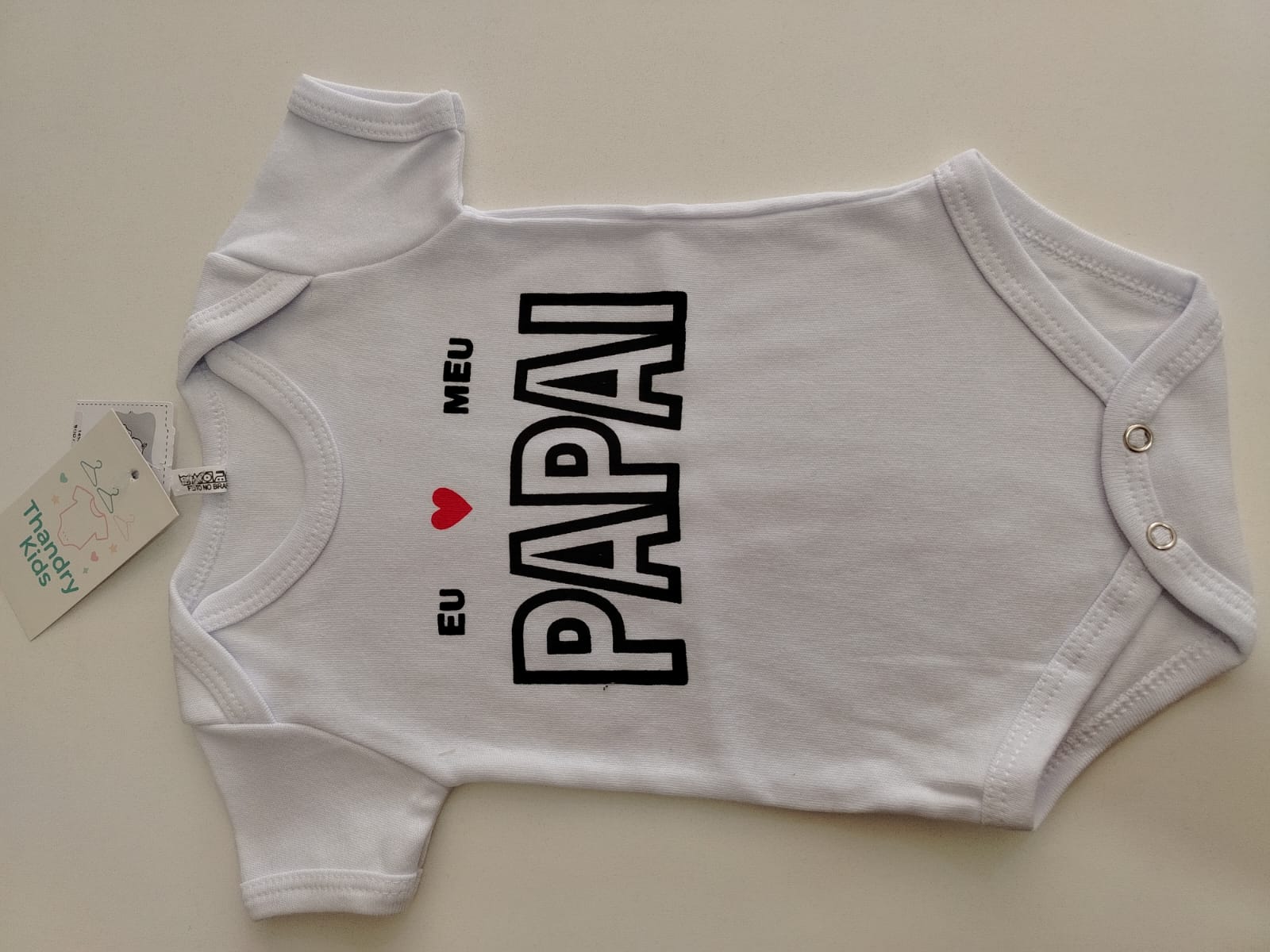 Body Infantil Branco Estampado “Eu ❤️ Meu Papai” – 100% Algodão