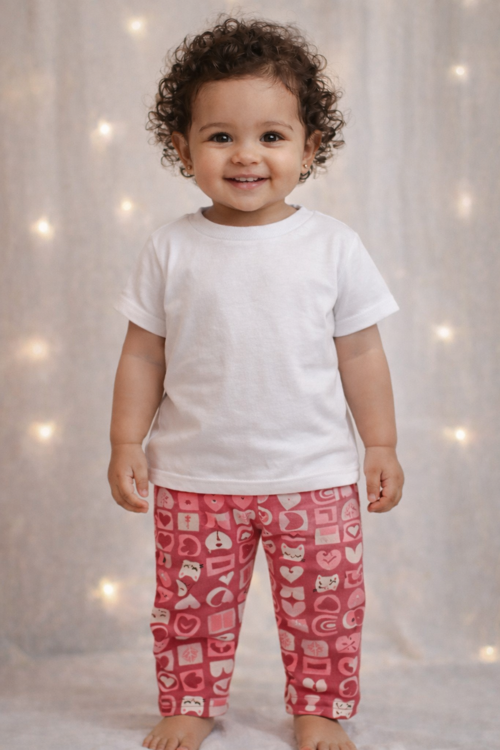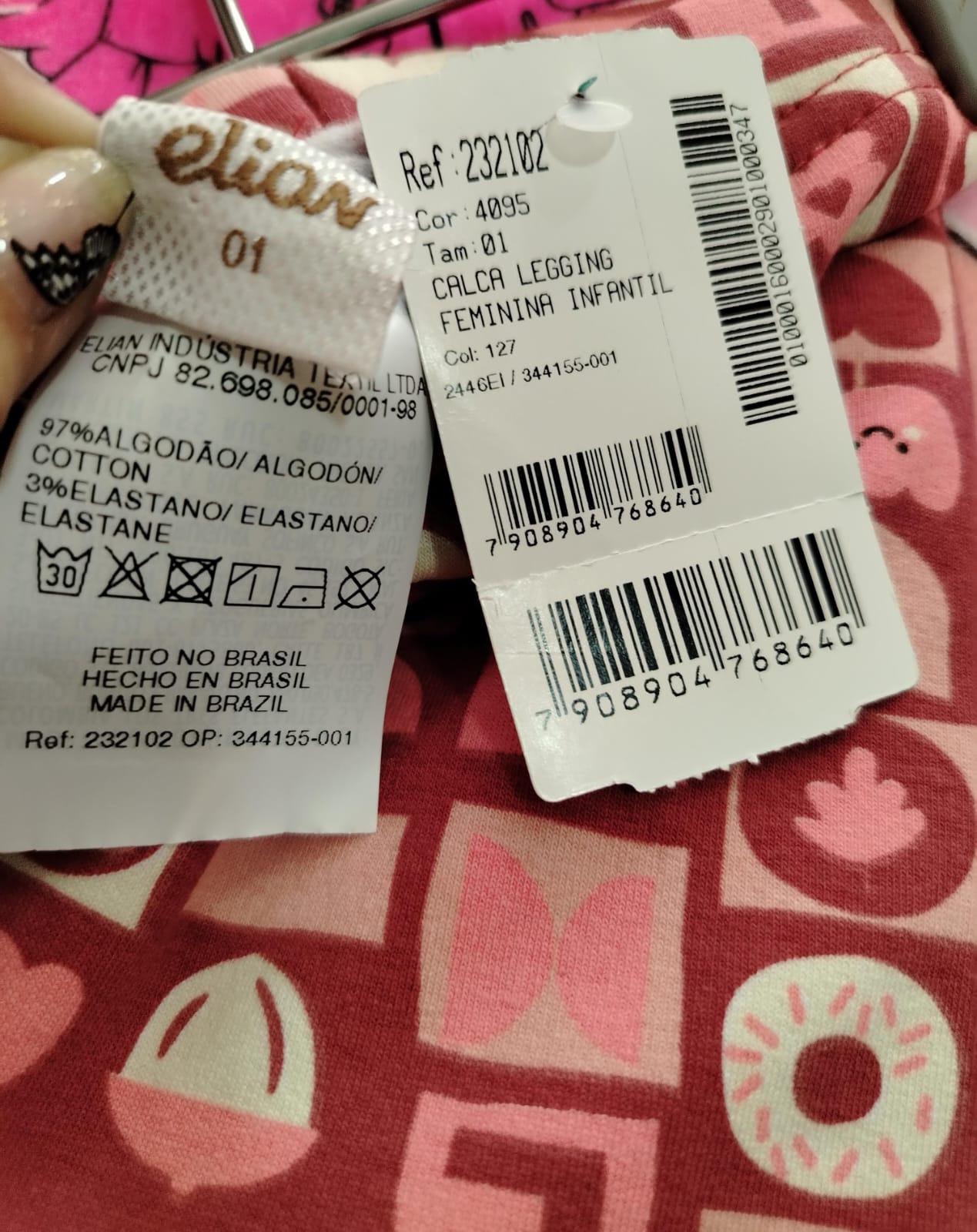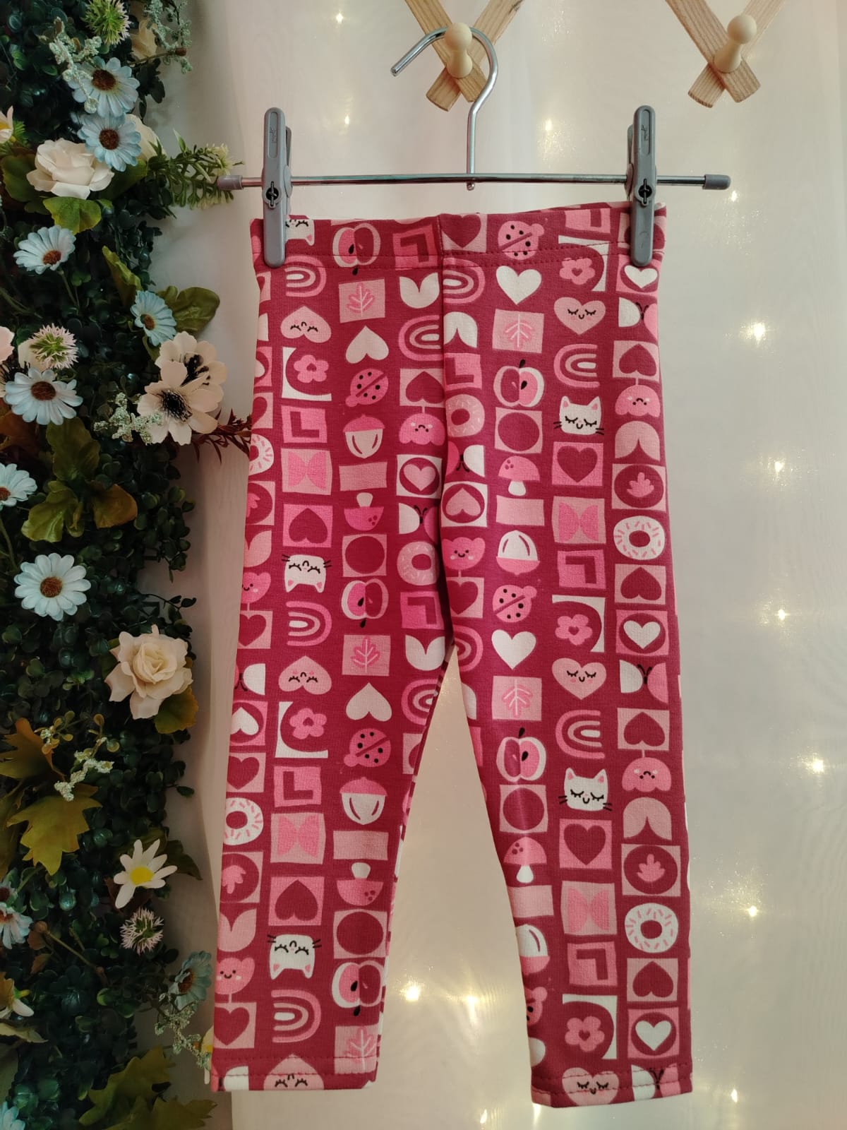 Calça legging infantil feminina da marca Elian, tamanho 01, confeccionada em malha confortável com elasticidade. Modelo estampado em tons de rosa com desenhos lúdicos (corações, frutas, formas geométricas e rostinhos), ideal para o dia a dia. Cós elástico que se ajusta ao corpo da criança, proporcionando conforto e liberdade de movimento. Peça leve, macia e perfeita para compor looks casuais e confortáveis.