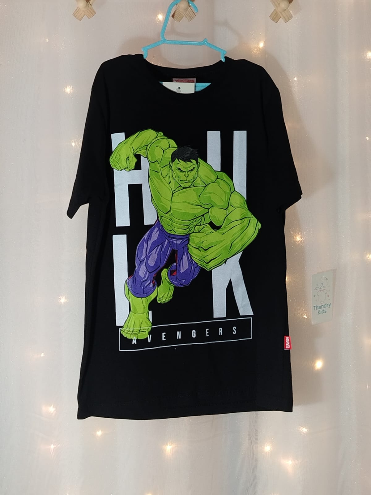 Camiseta infantil masculina oficial da Marvel, modelo Avengers com estampa vibrante do Hulk.