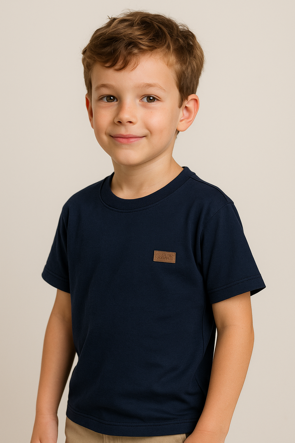 Camiseta infantil masculina confeccionada em meia malha 100% algodão, oferecendo conforto e maciez ao toque.