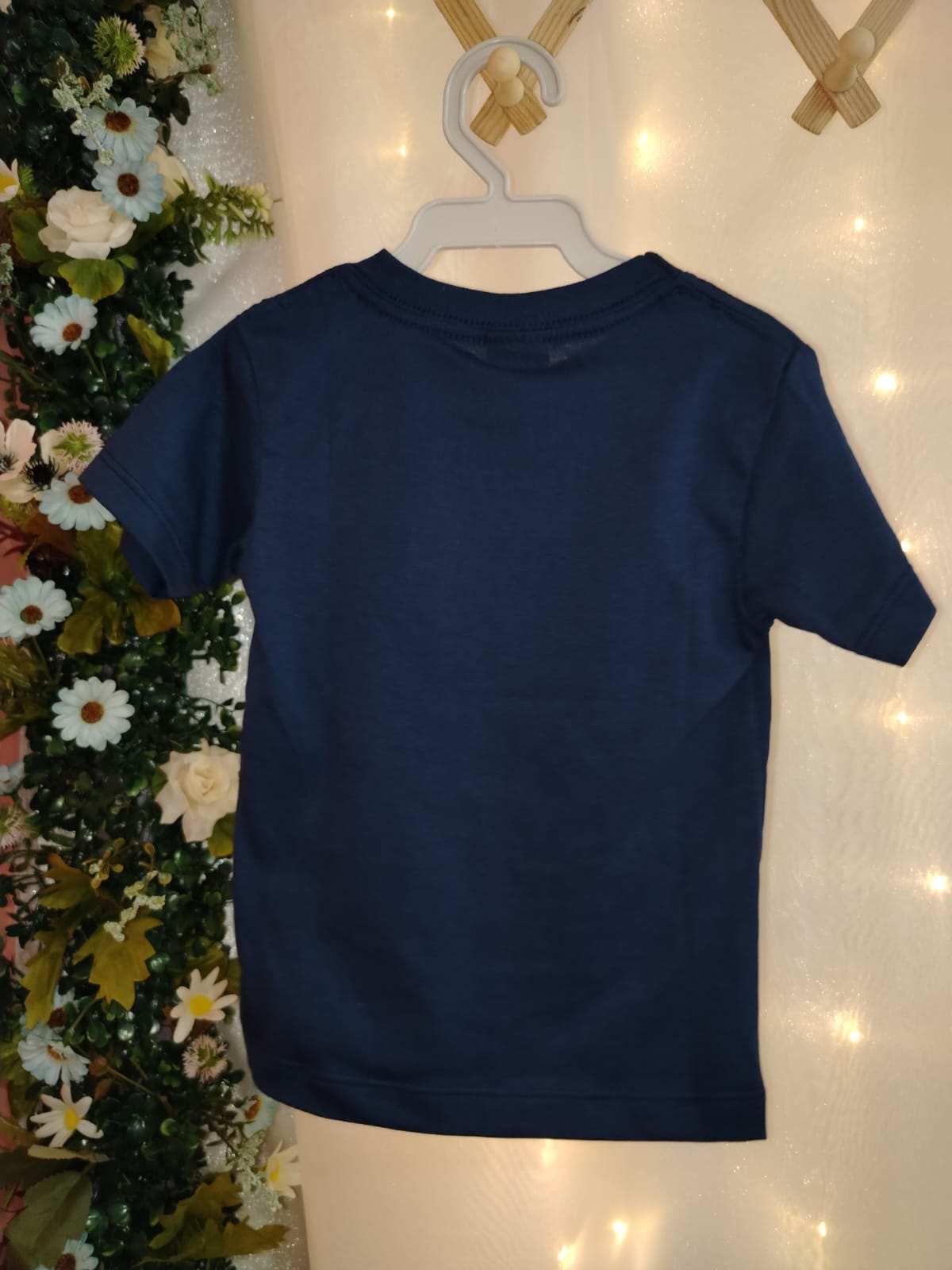 Camiseta infantil masculina confeccionada em meia malha de algodão, ideal para o dia a dia.