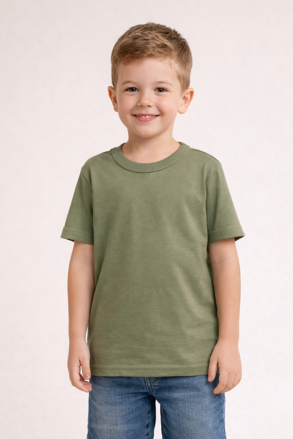 Camiseta infantil manga curta confeccionada em 100% algodão, proporcionando toque macio, conforto e excelente respirabilidade para o dia a dia da criança.