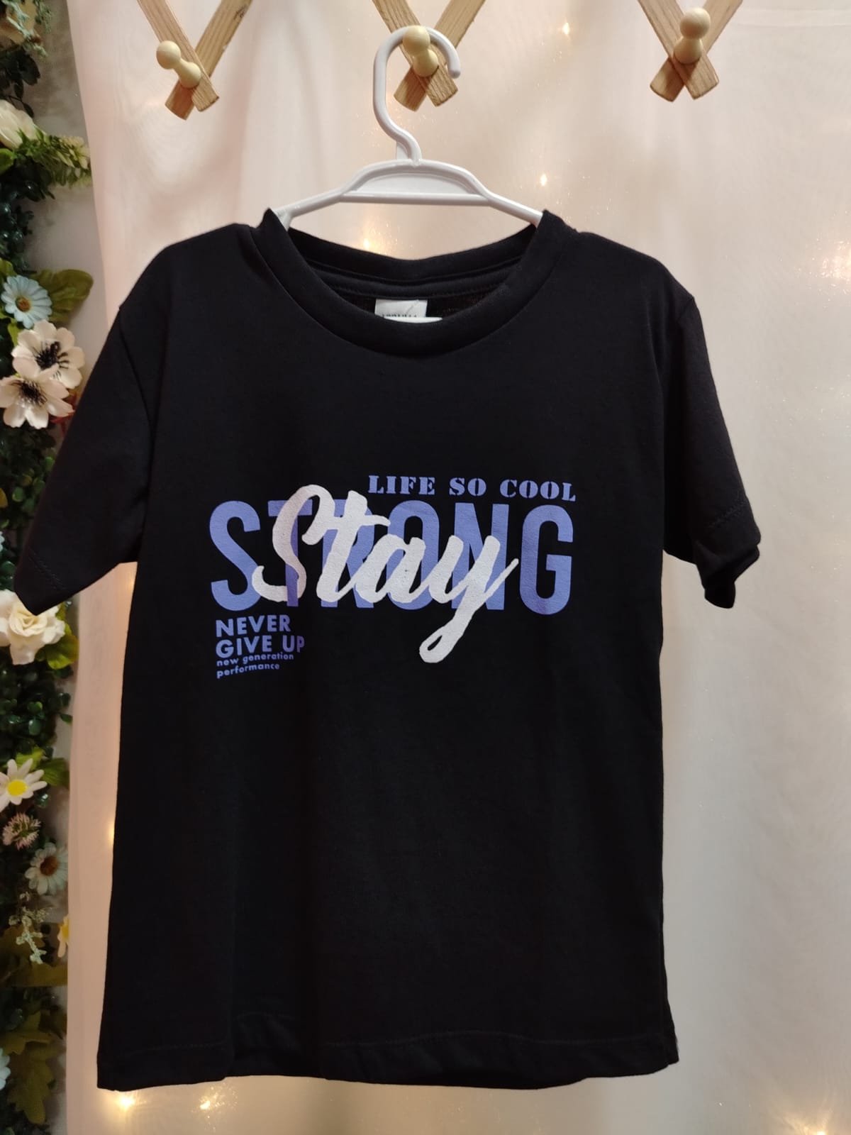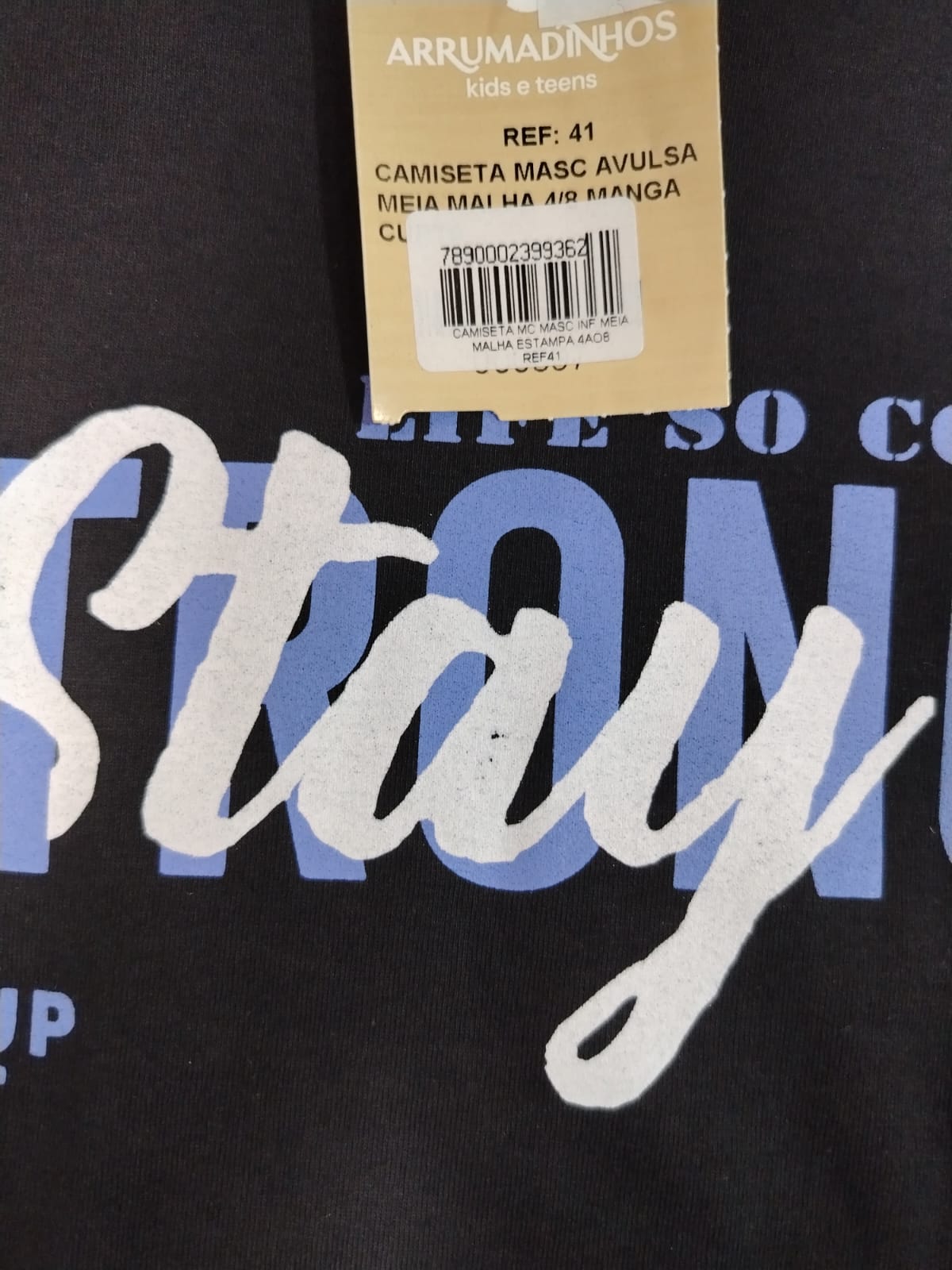 Camiseta Menino 41 preta Estampa Stay Strong TAMANHO 4