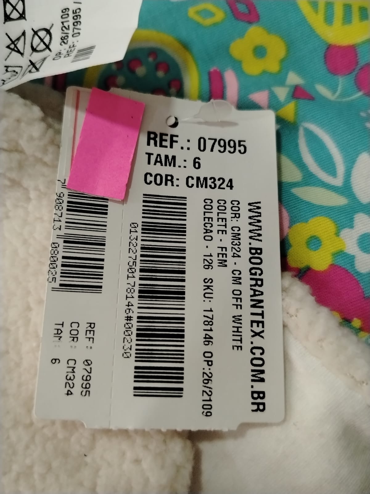 Colete Feminino Off White Peluciado 07995 Tam. 6
