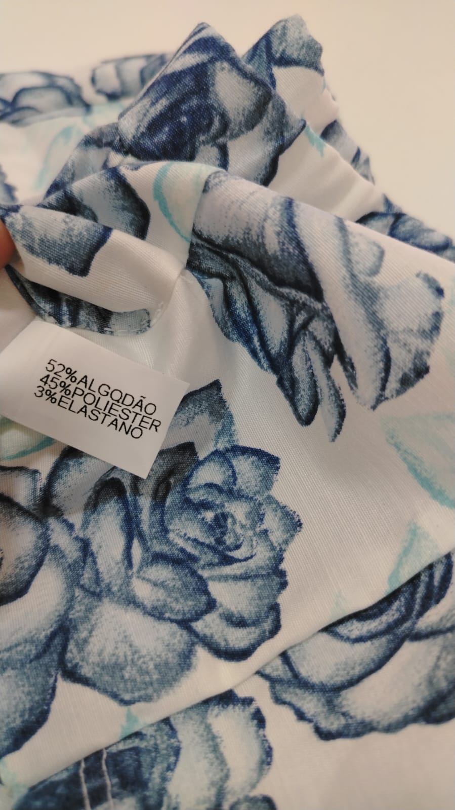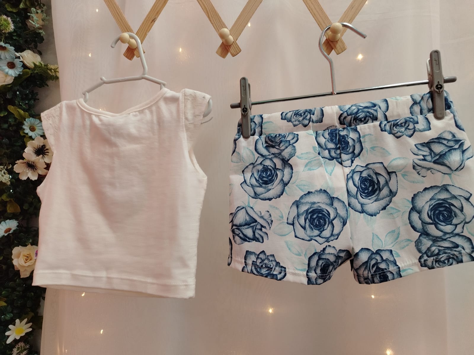 É um conjunto charmoso e estiloso, ideal para passeios, eventos, festas e momentos especiais. A combinação do branco com as flores azuis cria um visual delicado e sofisticado, perfeito para meninas que gostam de se vestir com estilo e conforto.