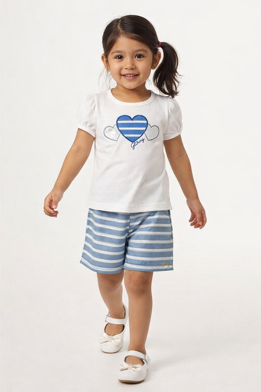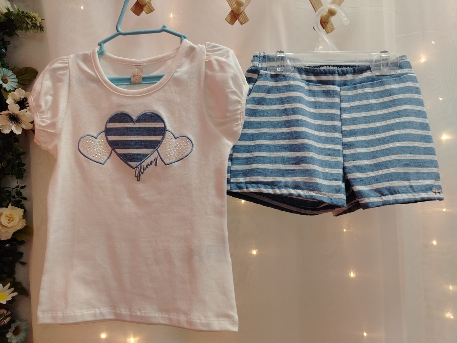 Conjunto infantil feminino delicado composto por camiseta e short, ideal para proporcionar conforto e estilo para o dia a dia das meninas.