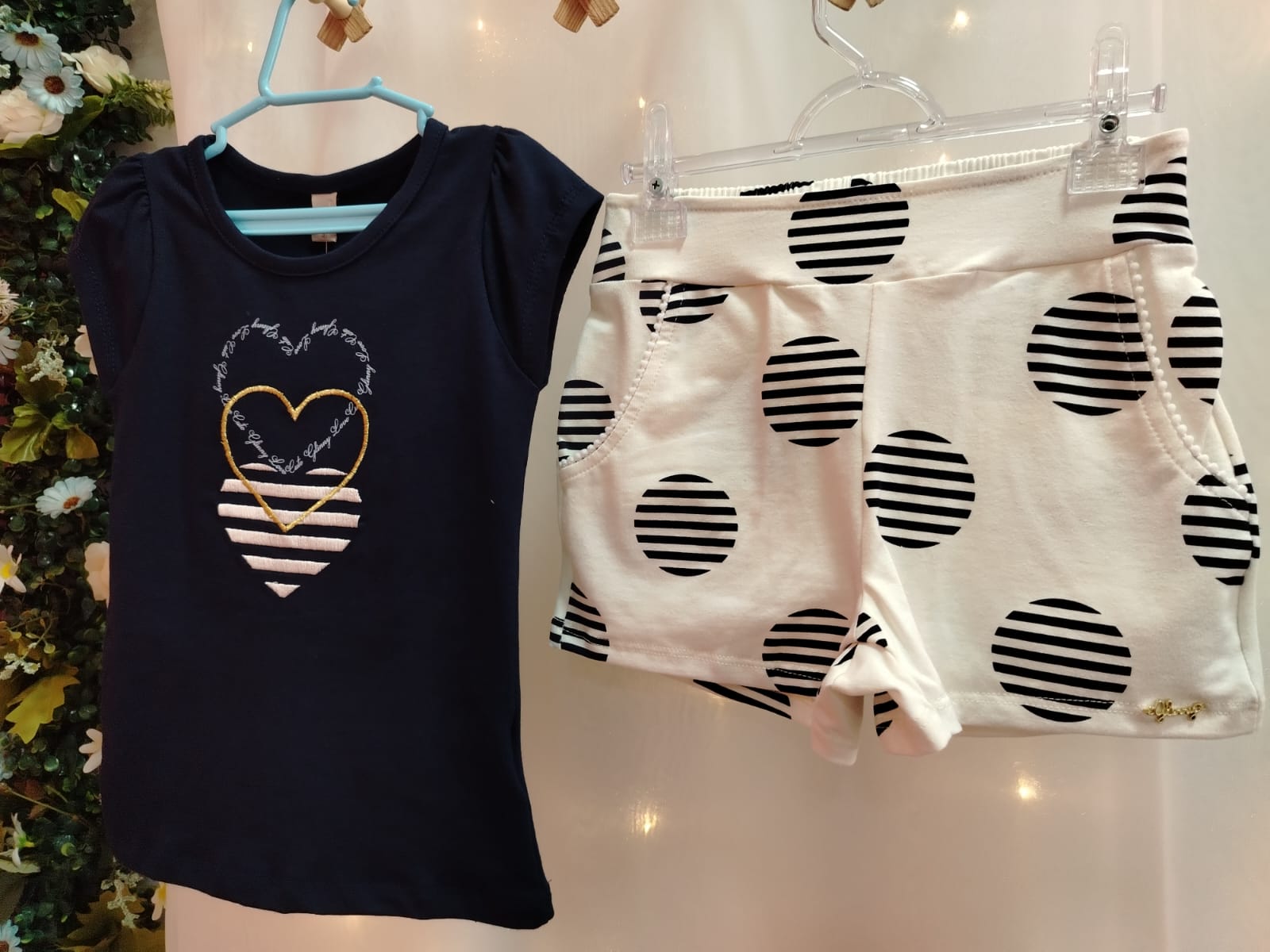 Conjunto infantil feminino composto por blusa e short, ideal para proporcionar conforto e estilo no dia a dia das pequenas.