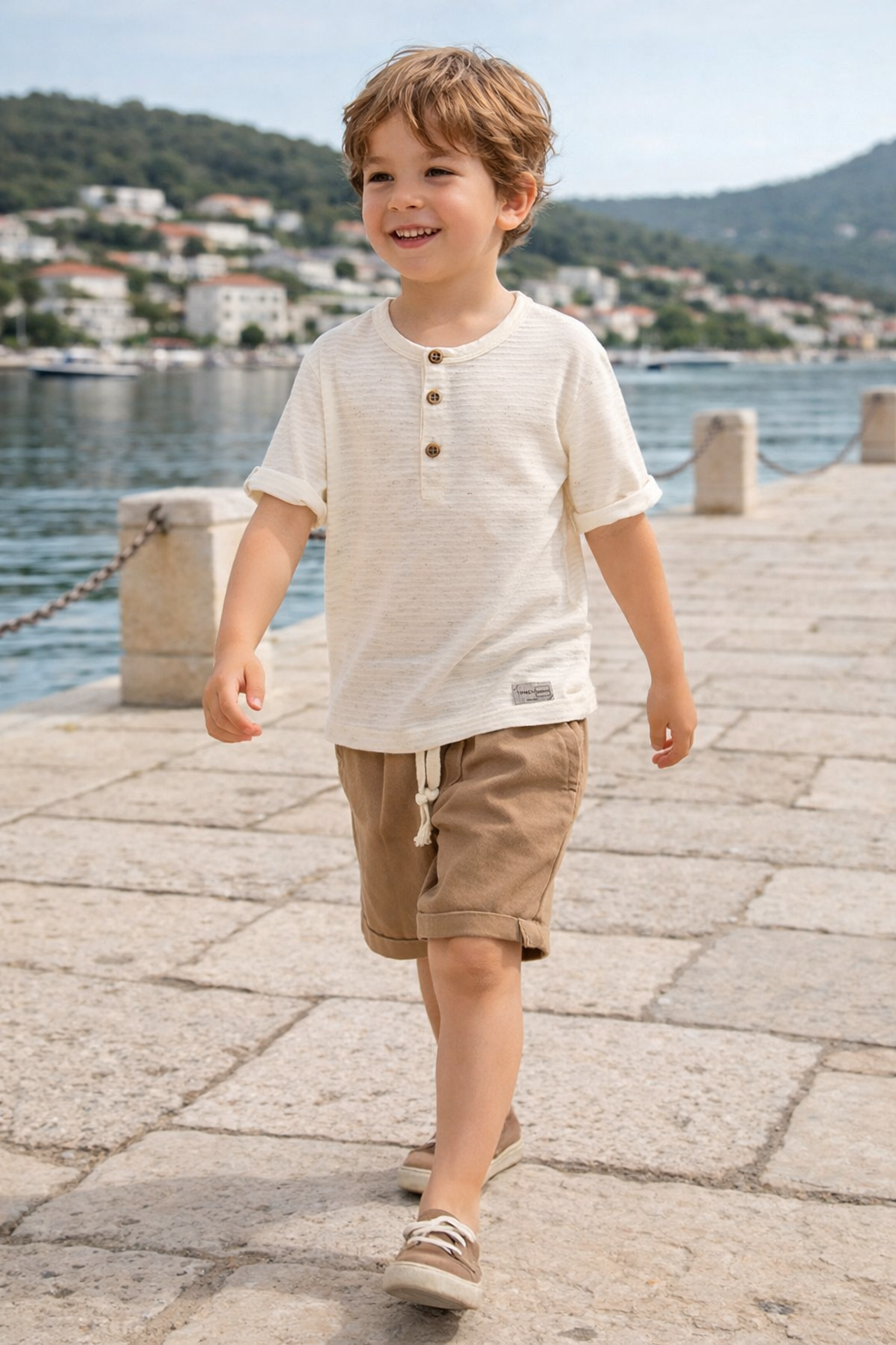 Tecido leve, macio e agradável ao toque, perfeito para acompanhar os pequenos em passeios e momentos de lazer.