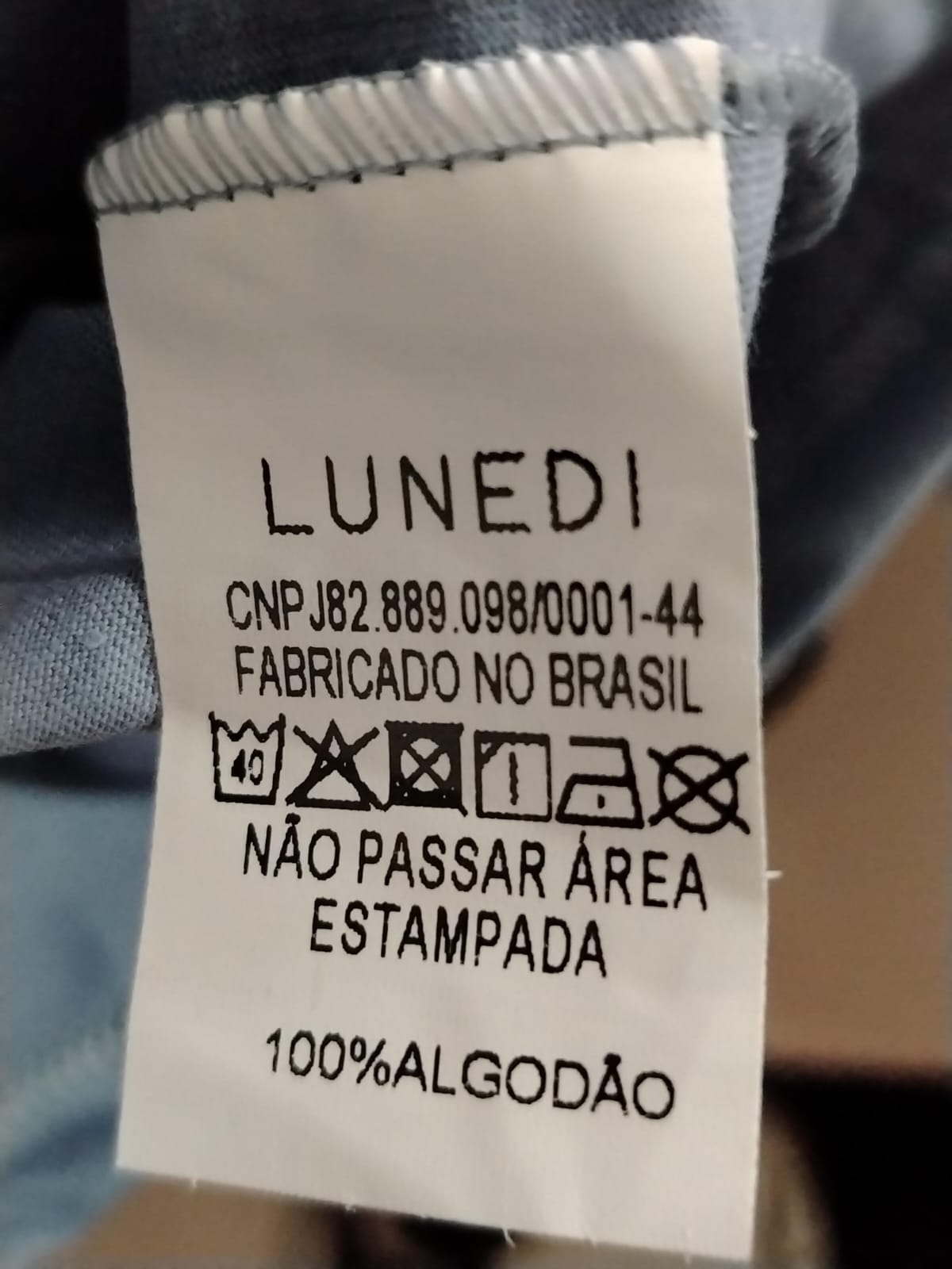 Passar a ferro até 110°C (não passar sobre a estampa)