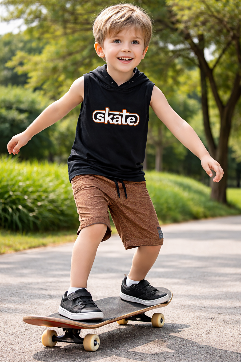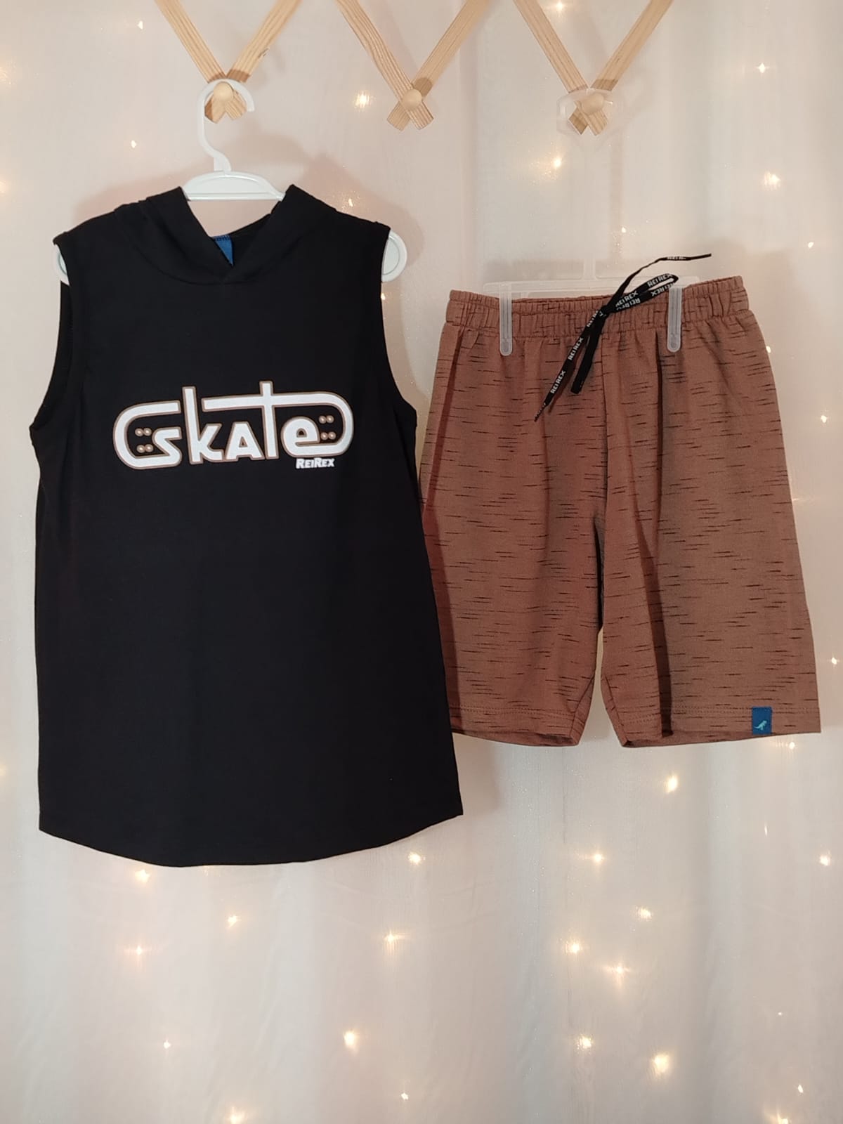 Conjunto infantil masculino composto por camiseta regata e bermuda, ideal para o dia a dia e momentos de lazer.