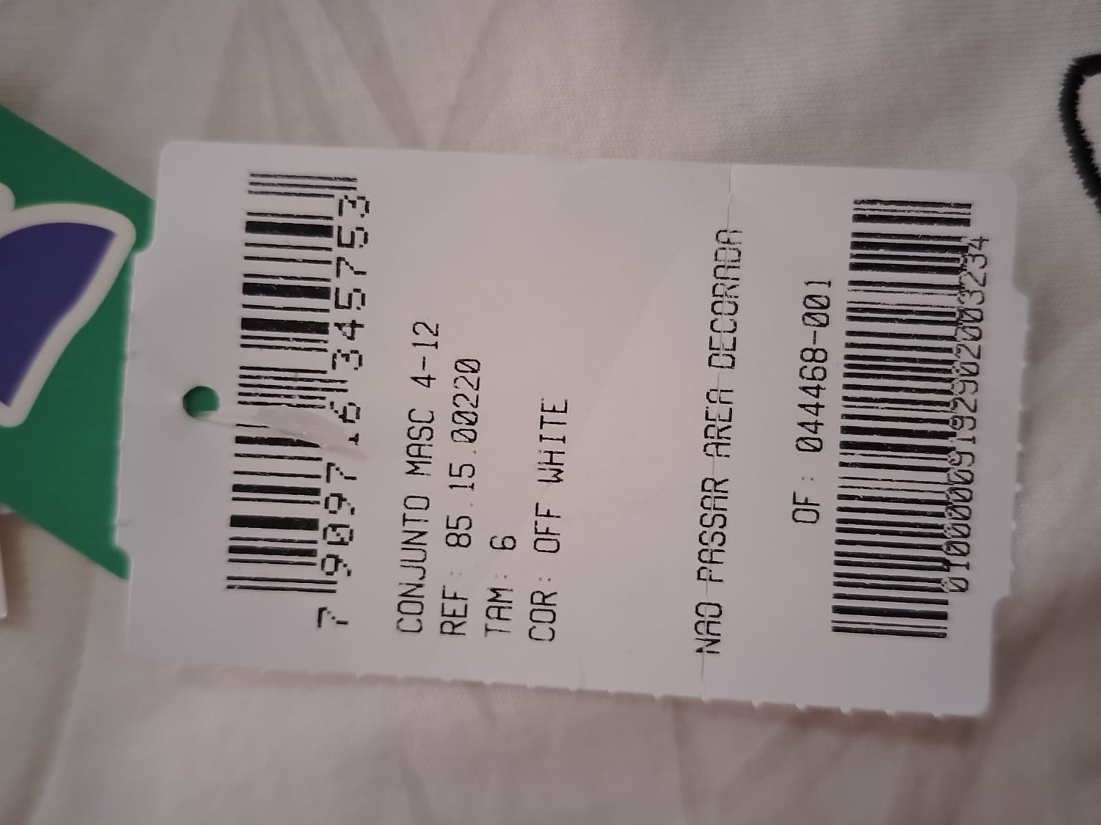 Conjunto Infantil Masculino Camiseta e Bermuda – Branco e Preto – Tam. 06 – Ref. 83150220