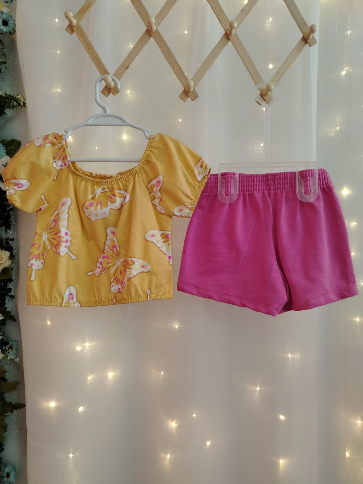 Seja o primeiro a avaliar “Conjunto Menina – 251771-Blusinha Amarela Borboletas + Short Rosa 4 Anos”