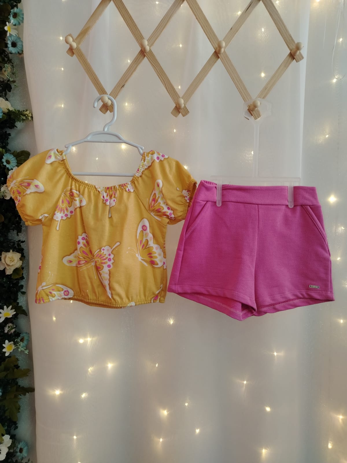 Conjunto Menina – 251771-Blusinha Amarela Borboletas + Short Rosa 4 Anos
