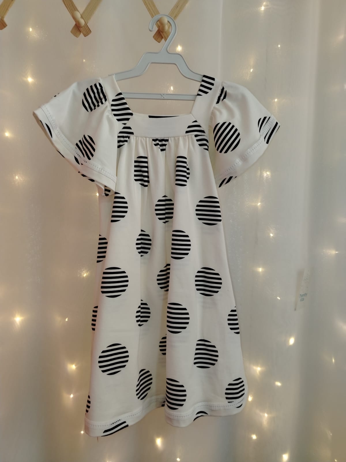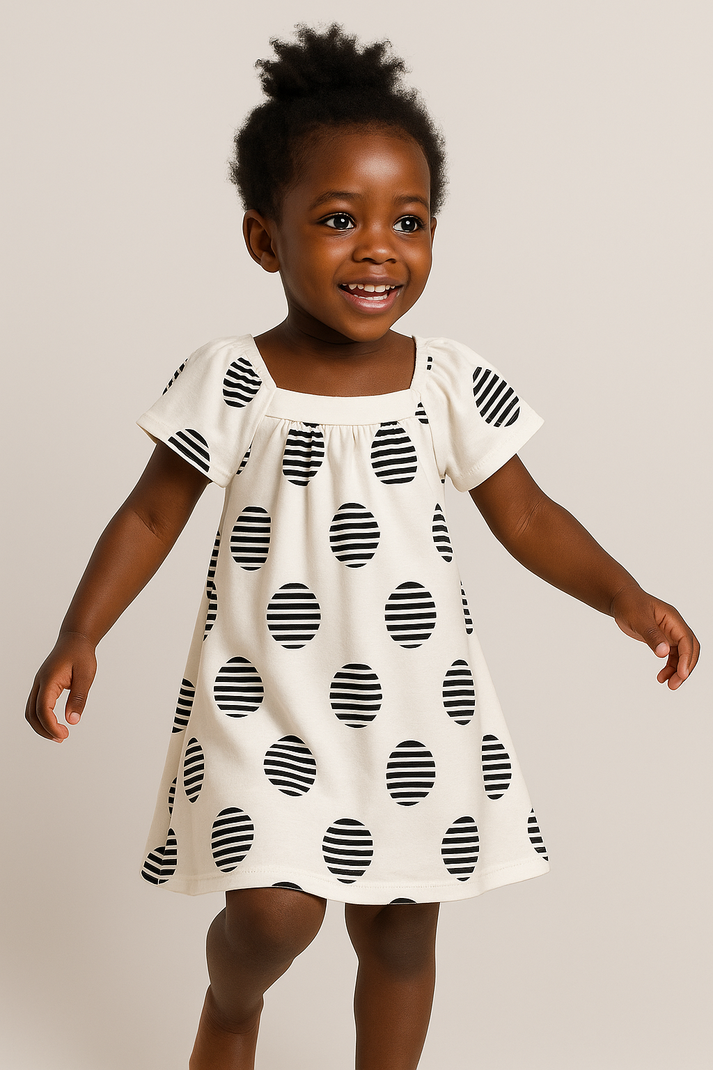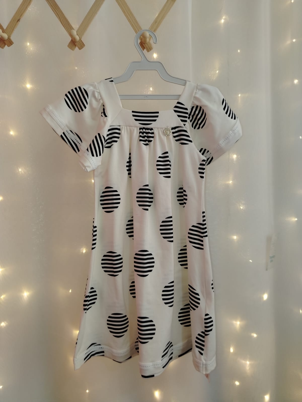 Este lindo vestido infantil Bogran é perfeito para as pequenas que amam conforto e estilo. Feito em malha macia, ele possui estampa moderna de poás com listras, modelagem soltinha e mangas curtas com detalhe delicado. O caimento é leve, ideal para o dia a dia ou para um look arrumadinho.