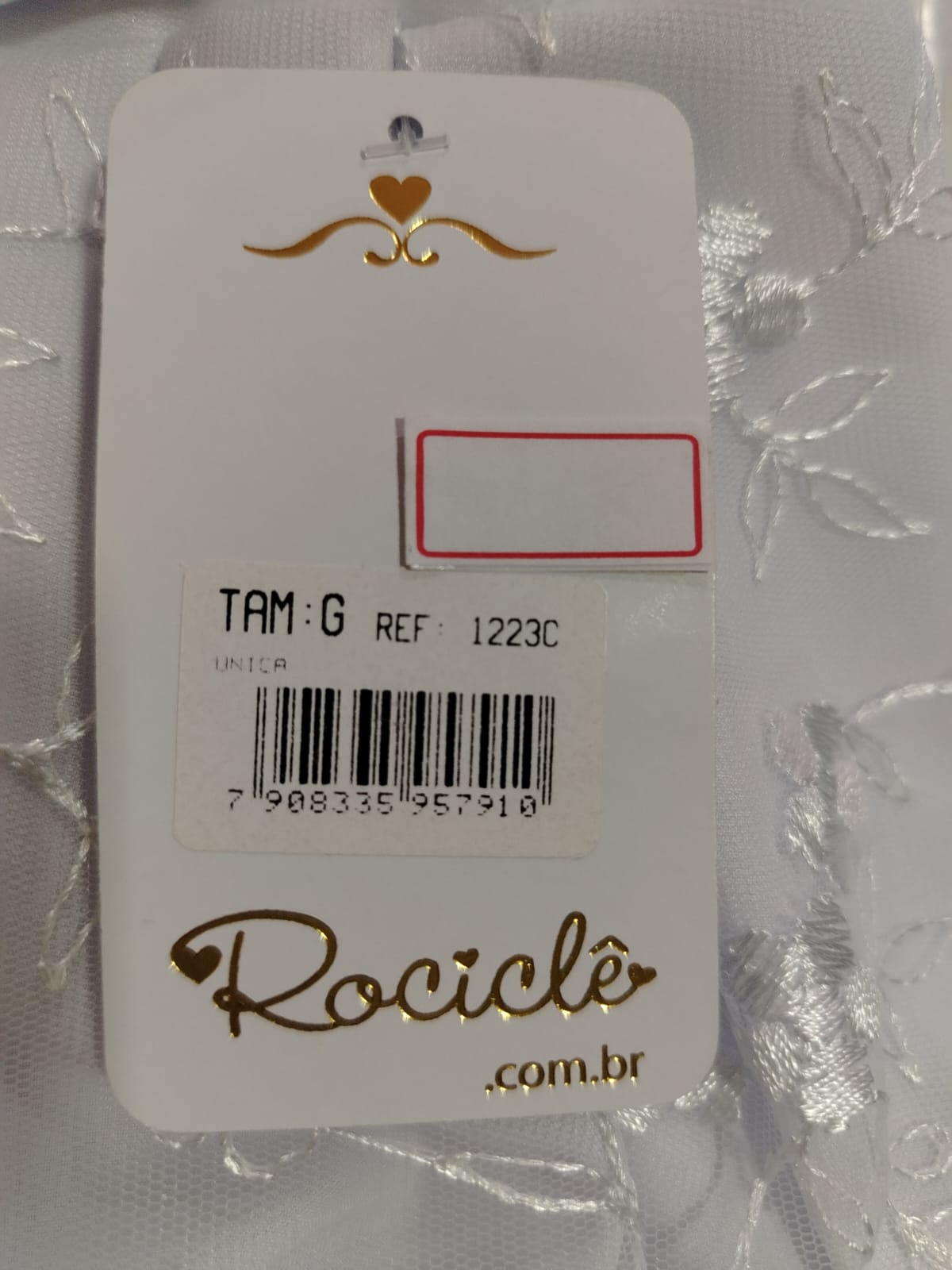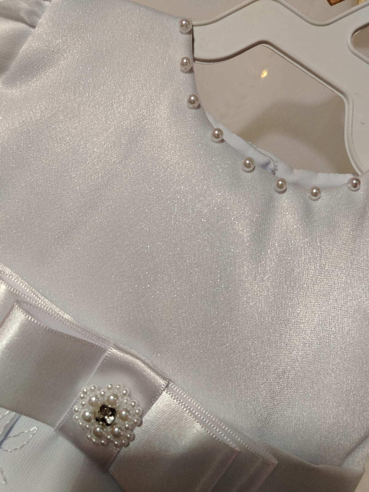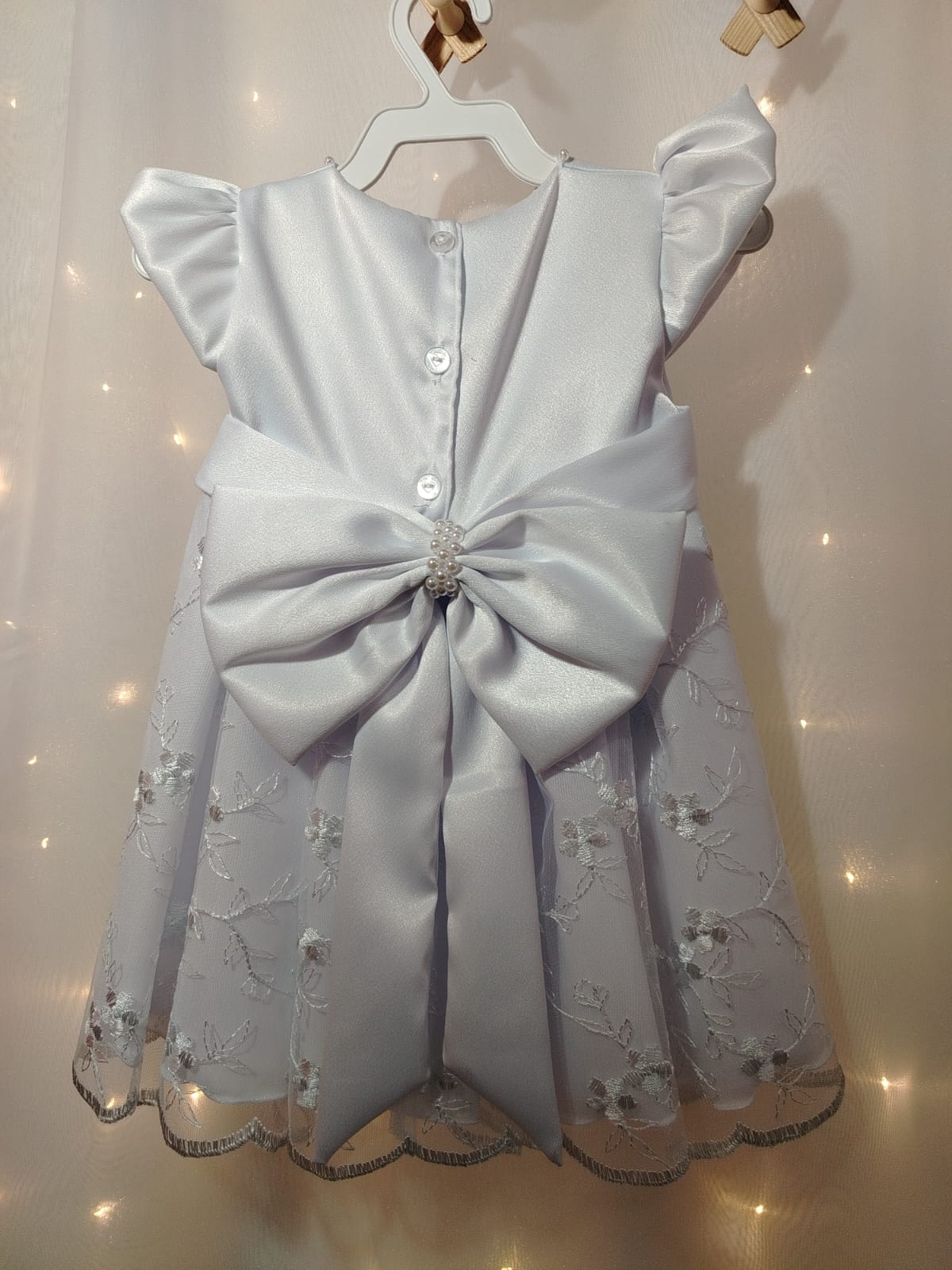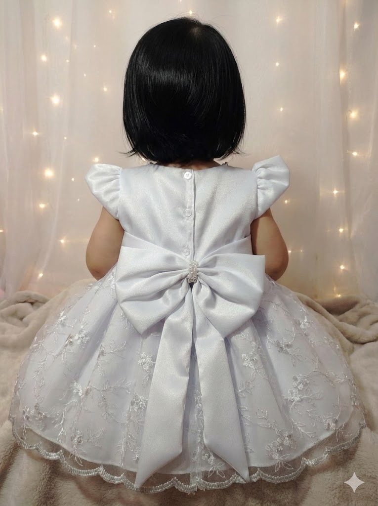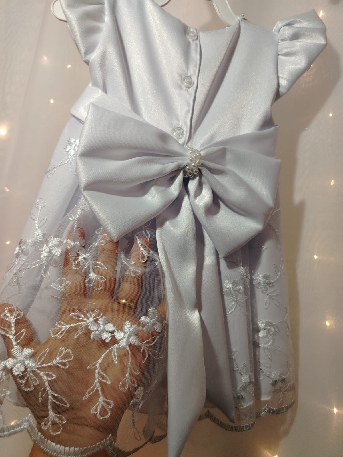 Vestido Festa Menina G (6 a 9 meses) – Branco com Tule Bordado e Pérolas
