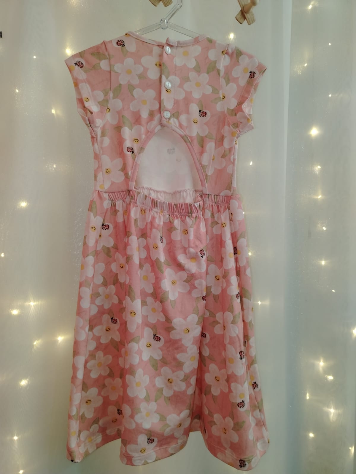 Este vestido Lunedi é puro charme! Com estampa floral delicada em tons suaves de rosa e detalhes de joaninhas, ele traz uma proposta leve e encantadora para o dia a dia das pequenas.